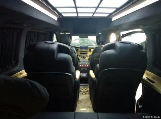 ★整车采用原厂一次性冲压钢顶,★全车实木地板,★电子中控触摸屏,★奔驰S级驾驶操纵台设计,★可移动拆卸办公小桌板,★BOSE5.1环绕音响系统,★独立25升车载冰箱,★进口航空座椅(可通风、加热、按摩、电动腿拖、前后调节,360度旋转),★原厂电动侧滑门,★220V逆变电源,★外接电源,★后排三连电动沙发床,★蓝光DVD,★32寸升降电视,★前后隔断,★多功能小吧台,★迈巴赫棚顶灯光,★私密隐私窗帘,★奔驰专用导航系统,★倒车影像(360度环影),★前后对讲系统,★迎宾踏板灯,★车载电热水壶,★桃木方向盘(上下+前后调节),★梅赛德斯奔驰镀络套件。等