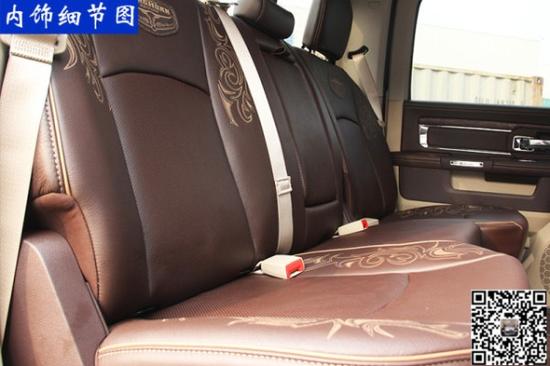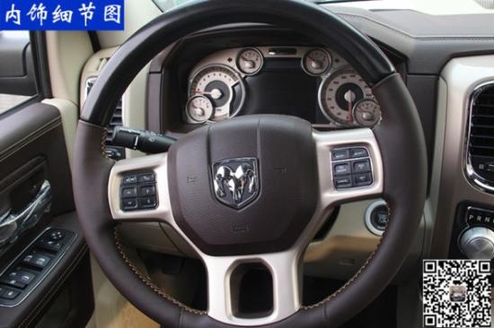 道奇公羊的内饰是另一种风格,美国风格太足,真皮刺绣的座椅和中央扶手、一点儿都不符合国际潮流的让人眼花缭乱的仪表盘、坚决不用地挡,而是类似路虎揽胜一样的旋转挡位旋钮,内饰的豪华程度和设计精美感比F-150 (配置|询价)更胜一筹。