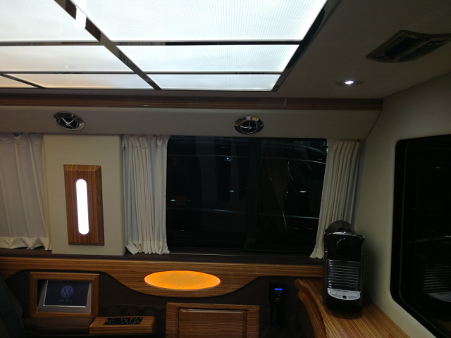 大众T6凯路威全车作隔热隔音处置,可最大水平的淘汰发动机及外部噪音的滋扰,奢华游艇级装潢,柚木地板铺设,到处彰显品位。32寸无线收集电视联合美国BOSE5.1围绕立体声音响所带来的视听感觉极度震动,今后让出行韶光不再单调寂寞,大众T6凯路威安装的吧台更是凸显尊贵奢华品尝,雀巢咖啡机可以随时在大众T6凯路威车内享受满意的下午茶韶光,大众T6凯路威迷你吧台带有储物柜可让随身的一些背包拖鞋之类的随身物品有处安置。