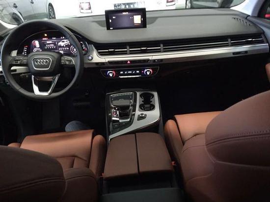 内饰方面:2017款奥迪Q7的内饰造型是典型奥迪风格,材质高档、做工精细,真皮座椅和方向盘、深棕色木纹装饰的点缀都体现出了低调的豪华感。还有仪表盘的水滴造型很别致,中控台的功能键排列有序,在排挡杆的周边,布置了MMI多媒体交互系统和一键式启动按钮,体现出奥迪崇尚科技的一面。购车咨询热线:15900243121 陶经理(同微信)(可售全国 随时看车 当日提车 详情电询)