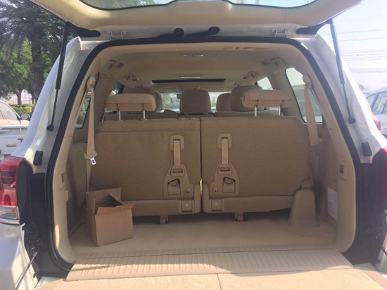 2017款丰田兰德酷路泽4000如果再将第二排座椅折起,完全能够满足特殊装备的承载。上方为多功能显示屏,中间为音响控制系统,左右两侧为空调出风口和空调温度控制按键。是陆地巡航舰贴近生活人性舒适化的设计。