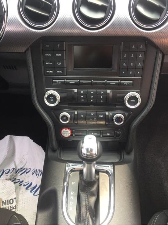 内饰方面:2017款福特野马内饰上主要升级的地方其实只有真皮座椅,其它很多内饰板用的还是硬塑料。2017款福特野马支持MyFord Touch功能的SYNC车载多媒体通讯娱乐系统,可通过中控台上的触控屏进行操作,科技感得到了进一步提升。
