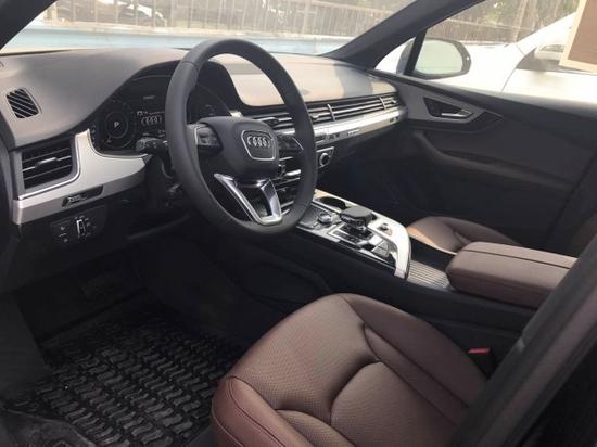 2017款加版奥迪Q7的内饰造型是典型奥迪风格,材质高档、做工精细,真皮座椅和方向盘、深棕色木纹装饰的点缀都体现出了低调的豪华感。还有仪表盘的水滴造型很别致,中控台的功能键排列有序。2017款奥迪Q7采用了全新家族式内饰设计风格,前排中央扶手也由分体变成了整体扶手。前排乘客的脚部空间、前排座椅背后和行李箱上都装有储物网袋。车顶内还有眼镜盒。不过内部整体结构依然保持家族式的设计风格。17款奥迪Q7宽大的乘坐空间给人以商务车的错觉。车内的玻璃升降开关和杯架都经过镀铬装饰,熠熠生辉的金属饰条让车内的尊贵感提升。奥迪Q7以创新的轻量化科技和豪华舒适的驾乘体验、同级别最大的车内空间和最丰富的驾驶辅助系统,为同级车型树立了划时代的全新准。