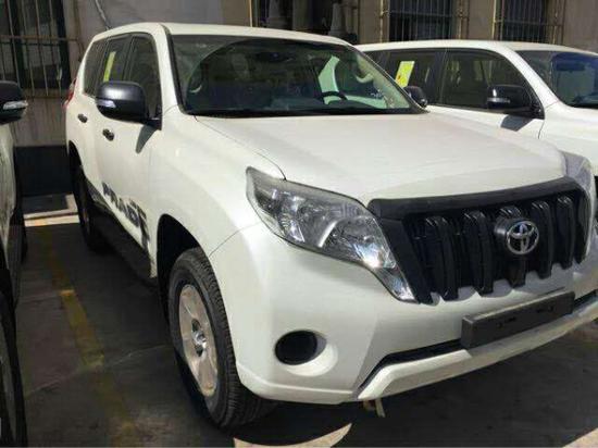 2017款丰田霸道中东版2700 EXR高丐版珍珠白/米电议优惠现车充足原厂配置:无窗、6速,底挂备胎,2气囊,冰箱,多功能方向盘,VSC车身稳定系统,前后雾灯,胎压监测,前后倒车雷达,黑脚踏版,17寸合金轮毂,7座,米色丝绒座椅,黑色门把手后视镜前中网