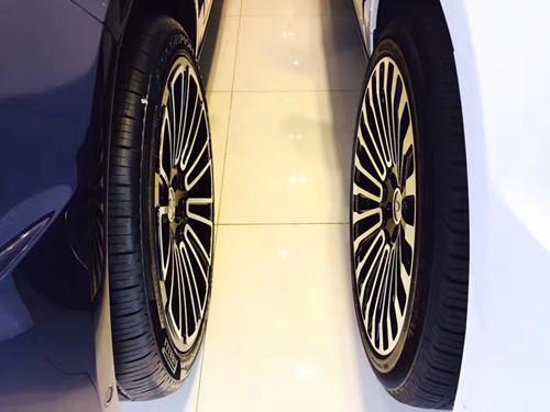 尺寸305/30 R22的宽大轮胎在80mm的宽体套件的包裹下显得格外有型,采用锻造工艺10辐放射式黑色轮毂与红色车身对比强烈,凸显整车运动气息,低扁平比设计的轮胎只适合在公路上疾驰。