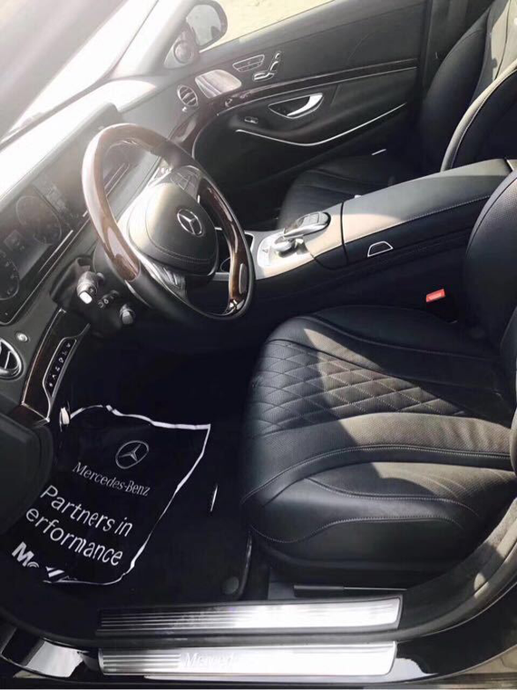 2016款奔驰迈巴赫S600 | 电议 | 单选:原厂奔驰AMG熏黑套件(AMG定制熏黑20轮、紫色卡钳、AMG黑色logo、黑色车身格栅、黑色窗口、黑色隐私玻璃)、轮毂锁、黑色Nappa真皮内顶 标配:胡桃木内饰、木饰皮饰多功能方向盘,车内氛围灯,可调光式全景天窗,抬头显示,夜视系统,液晶仪表盘,AIRMATIC空气悬挂,MAGIC车身控制系统,环车影像及自动泊车系统,THERMOTRONIC自动四区空调系统,智能卡,车内空气调节组件,多轮廓前后座椅通风加热按摩带记忆,行政四座,后排腿部支撑,后排折叠桌,后排冷热杯架,后排娱乐系统,遥控器,迈巴赫照明门槛,COMMAND Oline导航,车载wifi,COMMAND触摸控制器,Burmester柏林之声环绕音响系统(590瓦13扬声器带输出放大器),11气囊,BASE PLUS自动刹车辅助,盲点辅助,并道辅助,DISTRONIC PLUS雷达测距自适应巡航,PRE-SAFE主动刹车辅助,PRE-SAFE PLUS防追尾主动刹车辅助,LED智能灯光(自适应远近光调节、随动转向、增强型雾灯),ECO自动启停 | 电议 | 优惠 | 现车 |