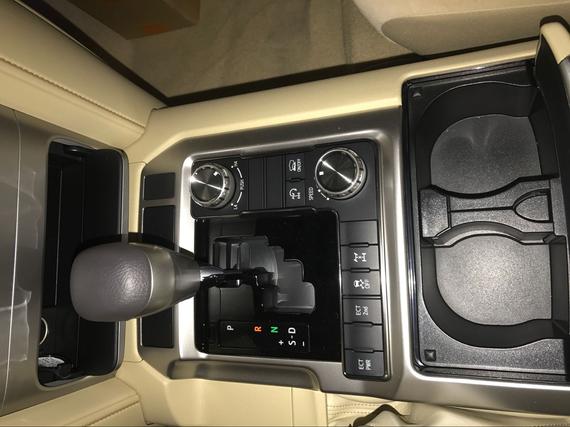 内饰方面:17款丰田酷路泽4000操控台没有过于繁杂的操控按钮,多功能方向盘方便了驾驶员的操控,轻松驾驶。设计师并没有忘记它越野车的身份,所以你能找到很多硬朗的线条,其实用性和舒适性更可媲美豪华轿车。中控台换成了具有磨沙手感的金属板件,增强了内饰的质感。上方为多功能显示屏,中间为音响控制系统,左右两侧为空调出风口和空调温度控制按键。