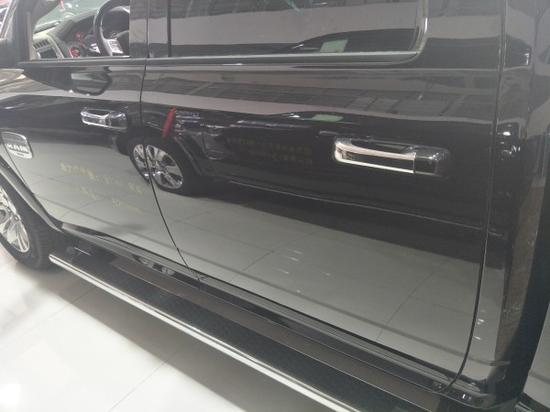 细节方面:道奇公羊真皮座椅各自独立,配有加热、按摩等舒适功能,每个座椅独立配一个操控手柄,各项功能由乘坐者自己控制。道奇公羊皮卡前杠是铁质前杠带拖钩,散发这金属气息,夸张的设计给人很强烈的视觉冲击,更激发了人们的驾驶欲望!