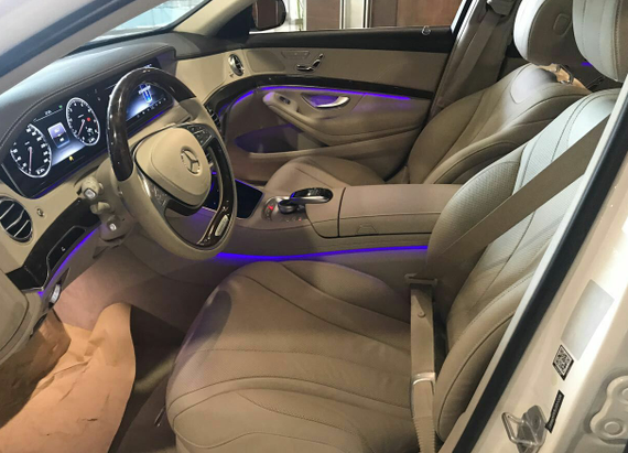 内饰方面:17款奔驰S400的内饰主要以家族式一体成型为主,仪表盘和中央显示屏集于一体,科技感十足,同时搭配一些可调节的多色氛围灯,更加的低调奢华,车内每一处都是真皮或者杨木内饰的拼接设计,高调的用料也为了追求更精致的内饰设计。对于氛围灯可有7种颜色进行调节,多种颜色呈现不同的氛围感觉,超大的显示屏也显得十分大气,并且使用方便。