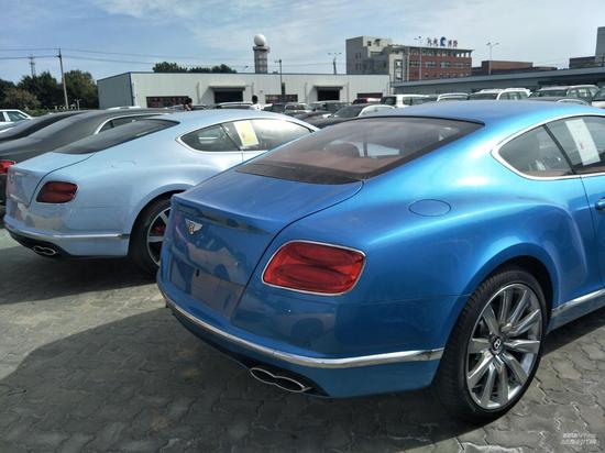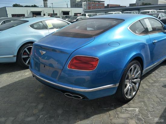 17款 欧规宾利欧陆GT V8 4.0T 亮片蓝棕 4座 舒适包特别定制版颜色,全国稀缺资源 天津现车配置:2门 4座 舒适包 座椅通风 座椅按摩 倒影 标配:4.0T 8速 全是四驱 20寸6辐条三叉式合金轮毂(着色涂装)单色三幅真皮多功能方向盘 三区空调 前排座椅加热 前14向电动座椅调节3组记忆 前排电动腰部支撑 无钥匙进入 一键启动 电吸门 电尾门日间行车灯 自动近光灯 自动大灯动态范围调节 大灯清洗 电控加热折叠记忆后视镜 标准黑色制动卡钳 凉面镀铬矩阵式进气格栅 车身同色进栅饰边 内饰暗色直纹桉树实木饰板(烟熏处理)四角空气悬挂带电子吸震 导航 泊车辅助 前后排舒适进入 前排中央控制