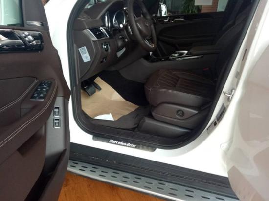 2017款奔驰GLS450,颜色:白外咖内,配置:全景天窗,P01包(盲点辅助 车道保持辅助 14向座椅调节带记忆 电动调节方向盘带记忆 前座椅加热 后视镜折叠带记忆 无钥匙进入启动 室内氛围灯 迎宾灯)外观包(20寸轮毂 发光脚踏)停车辅助包(环车影像、智能泊车)灯光包(氙灯 随动转向大灯 自适应远光灯)哈曼卡顿音响 二排电动 发光星标