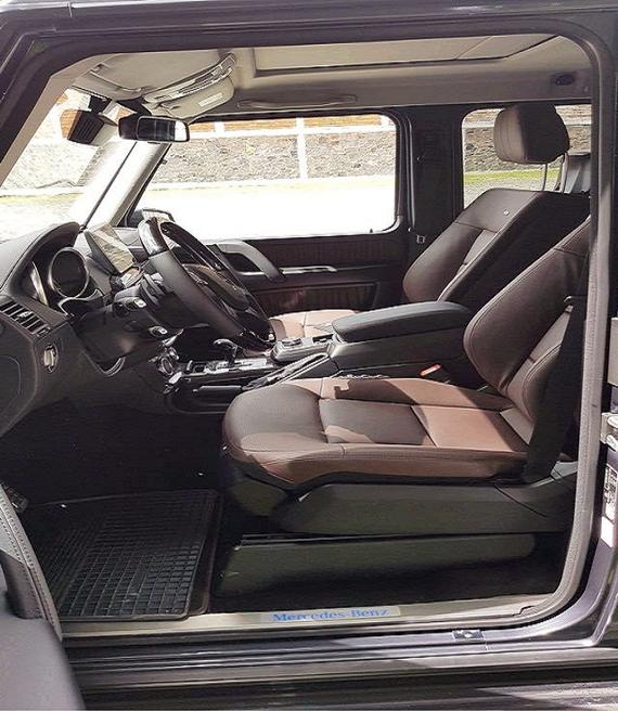 17款奔驰G500车头部份特别换上了碳纤维材质的单横栅式水箱护罩,并在两侧进气孔下方则追加了LED昼型灯,展现出更为华丽的车头造型。而引擎盖上方追加了大面积轻量化碳纤维材质组件,并在两侧追加了同为碳纤材质的空力套件,搭配车身大型轮拱同样碳纤维材质的设定,并刻意透出半截碳纤维材质的迷人纹路,让奔驰G500的外观更显凶悍。