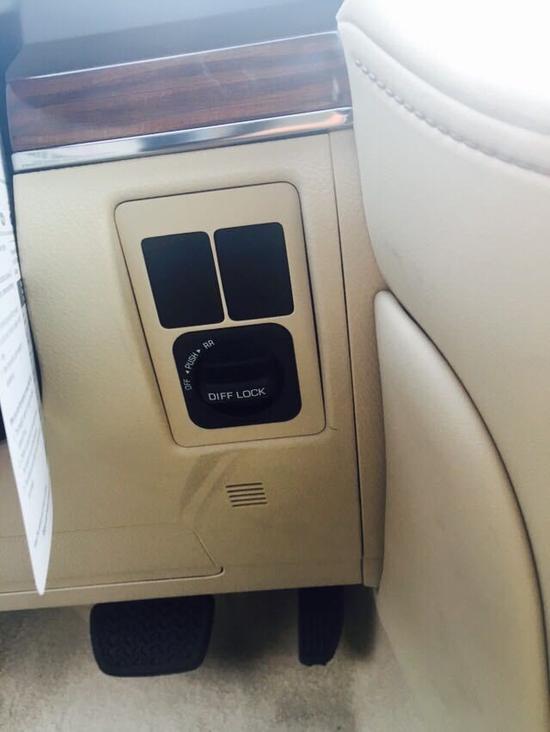内饰方面:17款丰田酷路泽4600操控台没有过于繁杂的操控按钮,多功能方向盘方便了驾驶员的操控,轻松驾驶。设计师并没有忘记它越野车的身份,所以你能找到很多硬朗的线条,其实用性和舒适性更可媲美豪华轿车。中控台换成了具有磨沙手感的金属板件,增强了内饰的质感。上方为多功能显示屏,中间为音响控制系统,左右两侧为空调出风口和空调温度控制按键