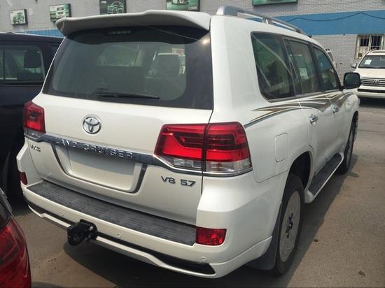 中东版丰田酷路泽5700GXR 珍珠白/米 底挂单备,氙灯LED,新款镀铬中网,雾灯+镀铬罩,行李架,转向边灯,航踏,18轮,拖钩,天窗,智能卡一键式启动,多功能方向盘,主驾驶副驾驶电动座椅,8座真皮座椅,巡航,桃木内饰,迎宾灯,KDSS底盘,冰箱,12气囊,摇起,气泵,大屏,倒影,双头枕DVD ,差速锁,自动空调