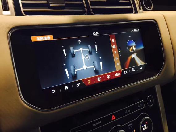 设计方面:路虎揽胜行政版前脸的造型与普通版车型相比没有任何区别,依旧是路虎家族的设计,层次分明,充满了力量感,日间行车灯特殊的造型也大大提高了车型的辨识度。想要控制好这样一台庞然大物,仅仅靠老司机是不够的,还需要一套360度全景倒车影像系统,可以看出前杠上集成了四枚雷达以及两枚摄像头。