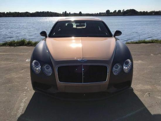 2017款宾利飞驰V8S颜色:玫瑰金配铁磁色外观/棕色内饰