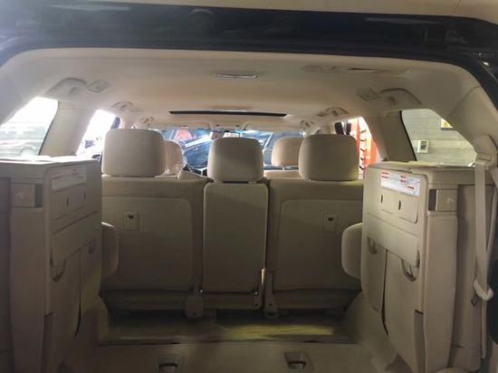 2017款丰田兰德酷路泽4000整体的内饰风格有些粗狂,又显得很运动,配置一应俱全。方向盘上面的多功能按键布局依旧没变,左侧为音响控制按钮,右侧为蓝牙电话按钮和定速巡航小拨杆。后排座椅宽大,足以满足身高195cm的贵宾,第二排座椅的电动滑动式设计,为第三排乘客提供更宽敞的腿部空间。