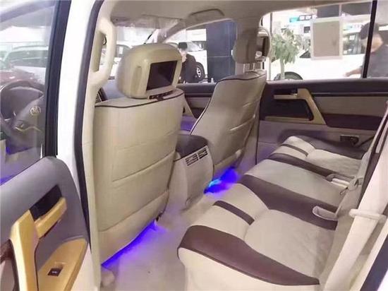配置方面:中东版丰田酷路泽4000改装全系配备了三区域独立控制自动空调(带空调净 化功能)、6碟吸入式DVD播放器、蓝牙免提通话功能。内部空间采用了符合人体工学 的设计理念,内部空间非常充裕,座椅采用真皮包裹。此外,还升级了Crawl低速巡航驾 驶辅助系统,将速度调节功能从原来的3挡升级成了5挡,从而进一步细化驾驶者对车辆的控制。