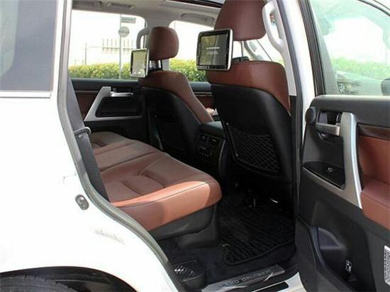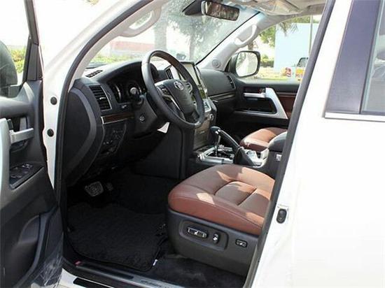 内饰方面:2017款丰田酷路泽5700顶配车内上深下浅的新色系搭配,让整个车内相比老款车型温馨的不少。特别是桃木饰条的加入使得车内看起来更“丰田”,也提升整车豪华氛围。