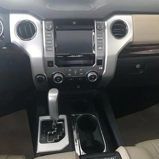 2017款丰田坦途的内饰做工极度风雅,真皮座椅、桃木的方向盘、动感仪表盘,在简约的同时,流露着庄重与典雅的气味。仪表盘几近倾覆了以前的全数计划,造型极其新鲜。换挡杆造型没有变革,中央扶手箱的凹槽可以寄放胆机等杂物。