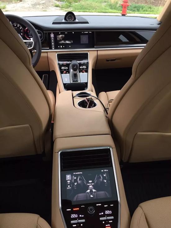 内饰方面:保时捷帕拉梅拉车内,被吸引的还有它的中控台,设计都很有特点,与普通轿车通常采用造型大相径庭。