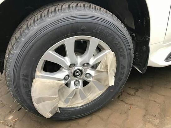 丰田酷路泽4000邓禄普的轮胎和新普拉多配合的简直是天衣无缝,轮胎抓地能力非常强。饱满的四幅方向盘手感不错,用起来绝对舒适,左右两侧装饰部分集成了音响系统和车载电话控制。