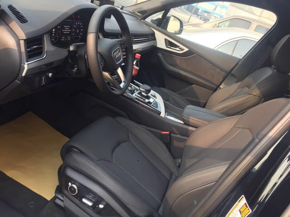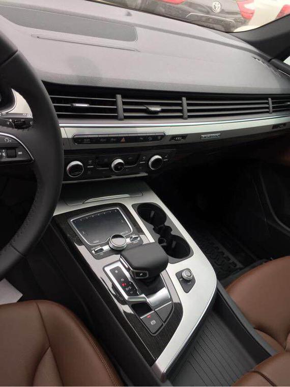 内饰方面:2017款奥迪Q7的内饰造型是典型奥迪风格,材质高档、做工精细,真皮座椅和方向盘、深色木纹装饰的点缀都体现出了低调的豪华感。还有仪表盘的水滴造型很别致,中控台的功能键排列有序,在排挡杆的周边,布置了MMI多媒体交互系统和一键式启动按钮,体现出奥迪崇尚科技的一面。