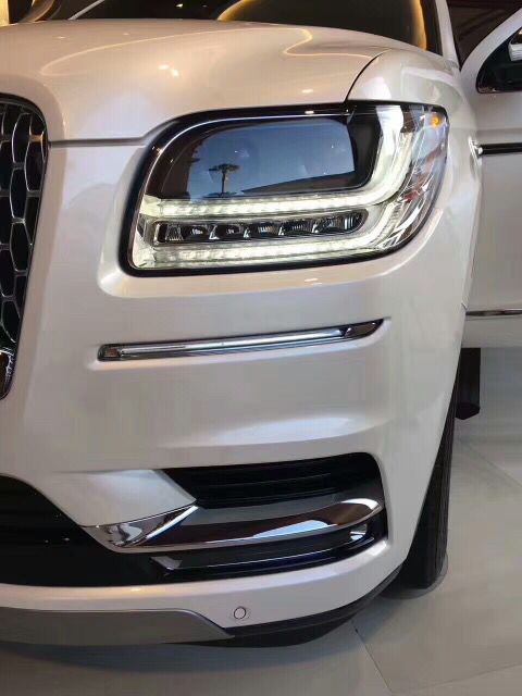 林肯领航员,林肯家族式的造型非常霸气、车身轮廓魁梧威猛,车身简洁干练,修长的车身更标志了自身内部空间的优势,该车的车身支柱都使用黑色设计,营造出悬浮式车顶的效果,整体来看十分时尚。全为LED光源前后灯组、科技含量极高非常精致。