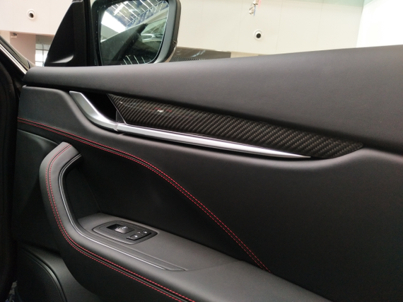 内饰方面:全新一代玛莎拉蒂SUV levante和进入到国内的两款车型均标配全景天窗,感觉上炫了 不少。除了采用触屏操作以外,挡把后方的旋钮和按键组合同样可以操作中控大屏功能,十分方便。