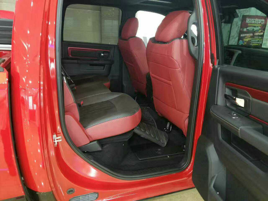 内饰方面,17款道奇公羊叛逆者5.7L在内部设计上还是延续了那种比较粗犷的风格,规整的中控台设计看上去比较死板,但丰富的配置会让你不由得为其称赞。公羊皮卡真皮座椅各自独立,配有加热、按摩等舒适功能,每个座椅独立配一个操控手柄,各项功能由乘坐者自己控制。道奇公羊皮卡车型全部座椅均采用真皮包裹,前排还配备了十分实用的运动座椅。