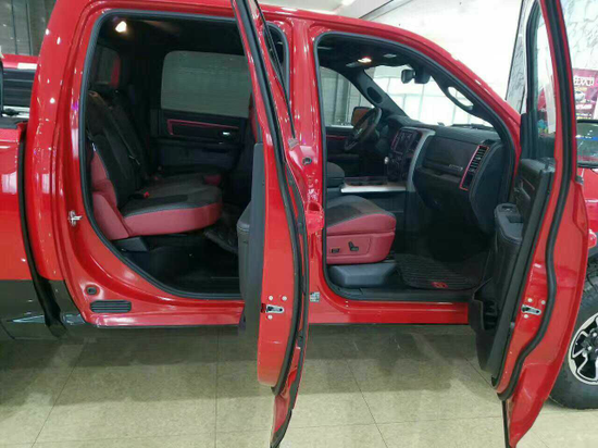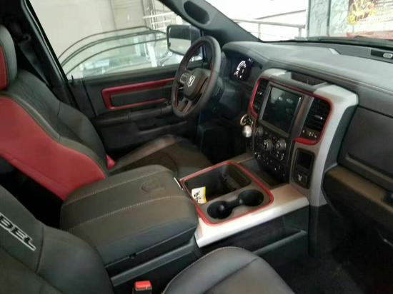 17款道奇公羊叛逆者 5.7L配置:V8发动机 8速变速箱 底盘升降 智能卡 一键式启动 电子旋转档 边箱 底盘升降 RAM隔栅栏 运动凸刘浩起前机盖 倒车雷达 倒车影像 8.4寸中控显示屏 双区自动空调 原装阿尔派音响 红黑双拼丝绒座椅 前排座椅加热 多功能加热方向盘 定速巡航 蓝牙连接 速敏感应雨刷 17寸轮毂 后排储物箱 简易床 电动天窗 电动后车窗玻璃 备胎内衬 边箱 底盘升降。