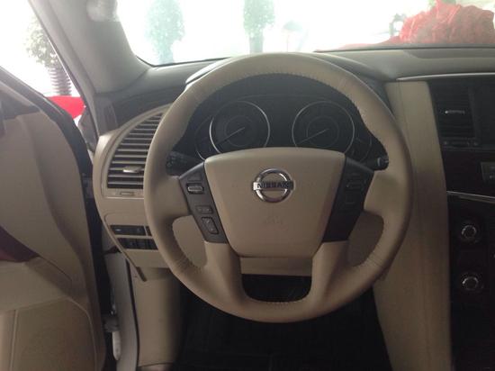 内饰方面:18款途乐Y62中东4.0 为三排座车型,内饰整体风格豪华,真皮座椅、DVD娱乐、上下坡以及胎压监测等装备也都悉数出现。新款日产途乐内饰材质也更加的考究,使用了皮革,铝以及木纹样条作为点缀。采用了豪华轿车惯用的四幅风向盘设计,粗细比较合手再加上真皮加实木的用料,手握感觉极佳。另外方向盘功能强大,集成了音响、空调控制及蓝牙车载免提系统,使驾驶者在行车中更为安全,做到手不离方向盘。同时方向盘加热功能,令驾驶者双手在寒冷的冬季也能得到最佳的呵护。