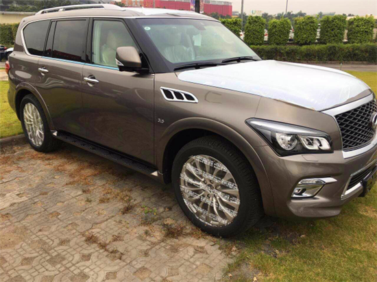 外观方面:17款英菲尼迪QX80中东版与老款之间外观上最大的区别在于引用了较多的镀铬装饰,进气格栅一改现款车型的五条横向镀铬饰条造型,选择的是网状设计,这一点与QX50的新老款车型相类似,新款国产QX50也是选择采用网状格栅。新款QX80前大灯由老款的氙气大灯升级为LED大灯,增加了智能远近光辅助系统,下进气口添加了镀铬装饰条;雾灯造型也由老款的圆形改为了四边形。