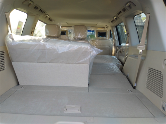 细节方面:17款日产途乐内饰兼具了舒适性和功能性。内饰材质也更加的考究,使用了皮革,铝以及木纹样条作为点缀。中控部分的设计比较具有豪华感,标准日系豪华车的风格,BOSE音响是很多中高端车所选用的,音响效果不会让你失望。日产尼桑途乐宽敞的乘坐和储物空间使其能够轻松地应对载人和载物等基本的车辆用途。也有很高的利用率。超大的后座空间在不放倒的情况下,储备厢一般够用,在放倒后座的情况下,储备厢面积达到3000L左右,就像一张大床。双叉臂式独立悬架支持软硬调节,途乐的轮胎尺寸采用R8偏重舒适性普利司通轮胎,与其它轮胎相比这款轮胎有更好的抗公路噪音性。
