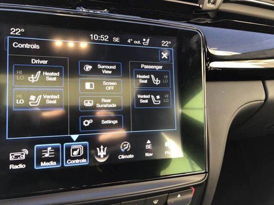17款玛莎拉蒂总裁轿车配备了一套全新的信息娱乐系统,采用高分辨率8.4英寸多点触控显示屏,更拥有兼容苹果CarPlay和安卓Auto的智能手机镜像功能。控制台的中部和下部也经过了重新设计,配备了一个旋钮控制器,音量和信息娱乐系统的各项功能均可通过操作旋钮来实现。