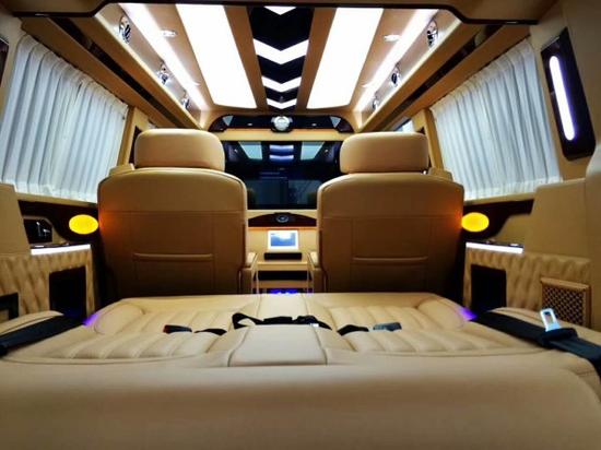 大众T6凯路威改装商务车头顶天窗、空气净化器与豪华氛围灯幕,脚下极易打扫的地板,眼前LED电视与时钟套件,萦绕耳畔的音乐,伸手可及的后舱电器触控系统,豪华围绕四周。