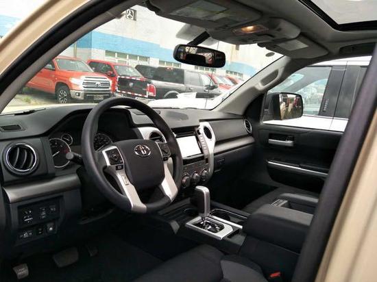 2017款丰田坦途5700SR5配置:5.7VnbspDHOC发动机,丝绒座椅带腰部支撑、倒影、多功能方向盘、六速手自一体、四驱两驱转换、十个安全气囊、带拖挂功能、TRD包:【18寸轮毂、后稳私玻璃、前后拖勾、梯形后悬架、加重减震器、油底护板、高速稳定杆、倒影、加热后视镜