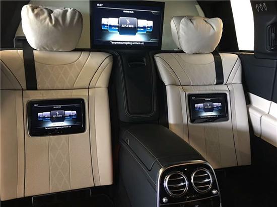 17款奔驰迈巴赫S级 (配置|询价)在内饰方面完全采用了与奔驰S级最高的设计,在用料以及做工等细节方面,迈巴赫S级则体现出了更为尊贵的品质。迈巴赫 S600上所独有的诗米安(半苯胺)皮质,据说是需要经过特殊工艺加工约 60天,皮革才能尽可能的保留原有的自然状态。中控台上的品牌钟表, 与那极致奢华的内饰也相得益彰。迈巴赫S600把更多注意力放在后排的舒适性上,4.4米的轴距,让后排乘坐空间更加充裕。