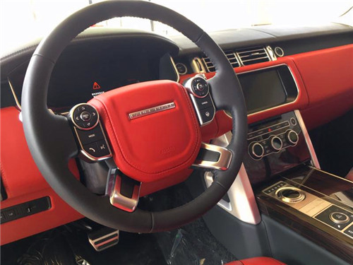 2017款路虎揽胜创世兼顾豪华与性能,新揽胜做到了。方正规整的中控设计所制造出的氛围都是沉稳、富有安全感。方向盘也非常的现代,实木与真皮的材质,也让奢华感升温不少,上面有音响,蓝牙的控制区和自适应巡航,方向盘加热控制区,操作非常方便。