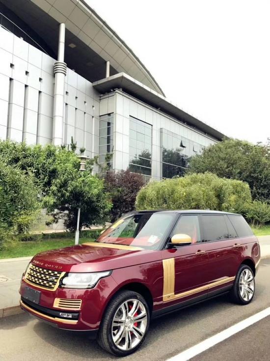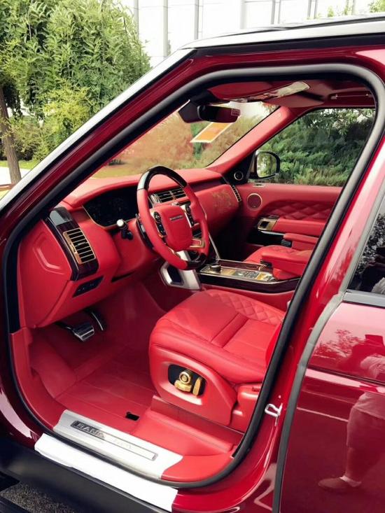 一打开车门令人敬畏,中控台上面和扶手箱处都缝制了一条龙,这就是中国龙版的揽胜,酒红色的皮质包裹,很显尊贵感,车主可谓是豪范十足,高大霸气的侧面。