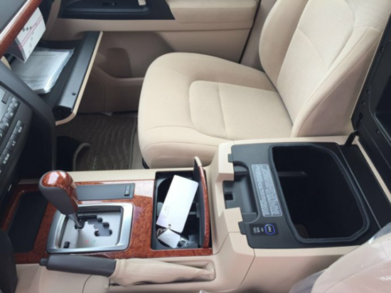 配置:白/米,8气囊,双油箱,底挂备胎, 智能卡, 一键启动, 8座,丝绒座椅, 桃木多功能方向盘 ,桃木内饰 ,门边防蹭条, 航空踏板,氙气大灯, LED日间行车灯,大灯清洗, 雾灯, 前后电眼 ,18寸铝合金轮,拖钩,巡航定速, 冰箱 ,自动空调 ,双差速锁 ,电动折叠后视镜 ,大灯高低调节 。