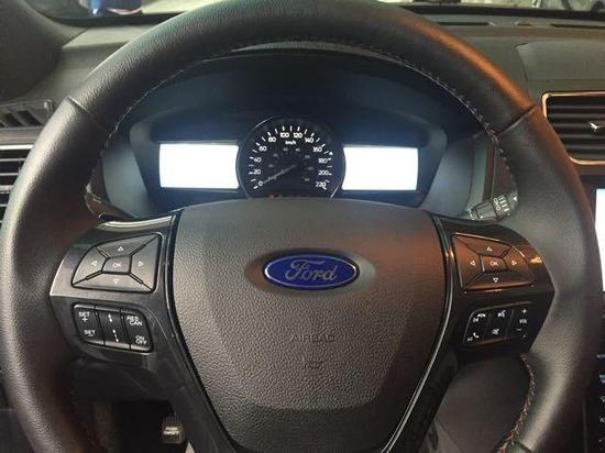 17款福特探险者美规版 采用全黑色的设计,圆润的轮廓充满了肌肉感。三幅式方向盘配备了齐全的功能按键。17款福特探险者美规版 内饰整体的选材与工艺无需赘述,大尺寸的中控行车电脑显示屏十分的醒目,内饰视觉的焦点。17款福特探险者美规版 虽然整体中控台看上去依然粗犷饱满,但却丝毫感受不到传统硬派SUV那种不拘小节的粗糙,反而豪华感和时尚感都很好的从中得以体现。