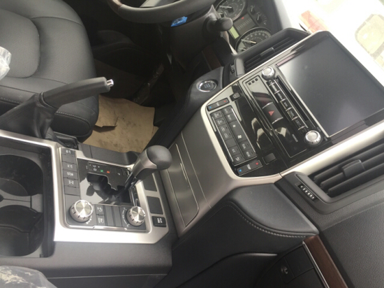 内饰方面:17款丰田酷路泽4000整个操控区域色调为 深色系,仪表盘、方向盘和排挡等位置均配以桃木装 点,尽显豪华质感。不但具有DVD导航,这款车的倒车 影像还可以显示在内后视镜上;中央扶手箱还装备了冷藏 箱,这些都与中规版车型有所不同。