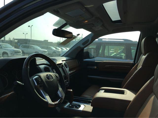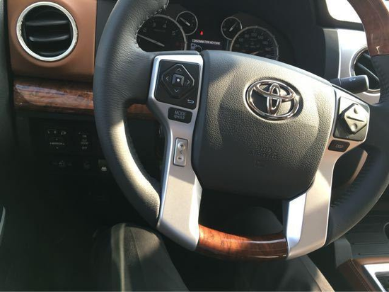 17款进口丰田坦途最新款皮卡中控区被银灰色的面板划分为驾驶区与乘坐区,在宽大的车身内排挡杆更为接近驾驶员更便于操作。在内部设计上,座椅全部采用真皮制作,方向盘和档把为桃木制作。肌肉感的设计同样延续到内饰的设计中。真皮多功能方面盘似曾相识,现款兰德酷路泽也是采用类似设计,只是坦途这个方向盘功能更丰富。