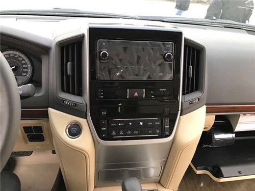 内饰方面:17款丰田酷路泽4000操控台没有过于繁杂的操控按钮,多功能方向盘方便了驾驶员的操控,轻松驾驶。设计师并没有忘记它越野车的身份,所以你能找到很多硬朗的线条,其实用性和舒适性更可媲美豪华轿车。中控台换成了具有磨沙手感的金属板件,增强了内饰的质感。上方为多功能显示屏,中间为音响控制系统,左右两侧为空调出风口和空调温度控制按键。