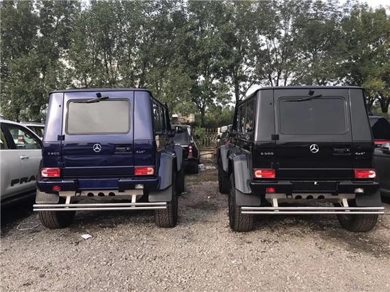 | 17款奔驰G500 4×4² | 红/黑 神秘蓝/黑 黑/黑 | 4.0T (汽油)V8发动机,7速,门式车桥,AMG包围,加高加宽的车身,氙灯,日行灯,黑色翻毛皮内顶,碳纤维内饰,前排座椅加热带通风,翻毛皮和真皮双拼座椅和方向盘,换挡拨片,座椅记忆,碳纤维轮眉,车顶碳纤维扰流板带LED上雾灯,黑色车顶,,不锈钢双车底保护,可调悬挂,22轮,前中后三把差速锁,哈曼音响,红卡钳,打孔刹车盘,小天窗, 倒影,踏板 | 425万含税 | 优惠 | 天津现车 随时提车 |