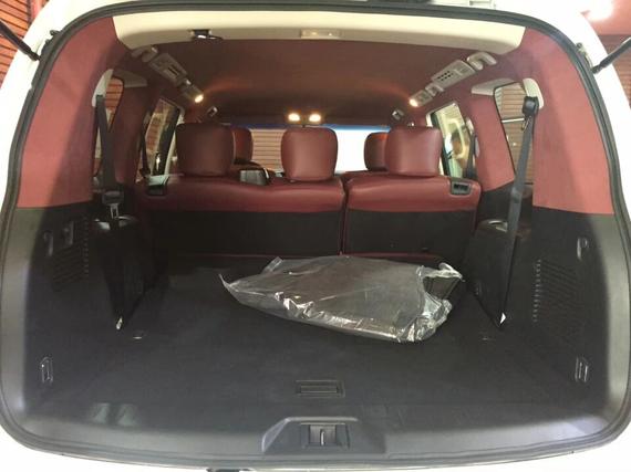 18款尼桑途乐Y62内饰材质也更加的考究, 使用了皮革,铝以及木纹样条作为点缀。中控部分的设计比较具有豪华感。宽敞的乘坐和储物空间使 其能够轻松地应对载人和载物等基本的车辆用途。也有很高的利用率。