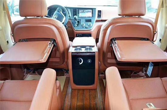 2排有原车的布座椅后改装了高端大气的航空座椅,座椅功能带通风,加热,按摩,2排电动,实木地板这种高端的豪华改装甚至威胁到了像埃尔法的这种商务车型。