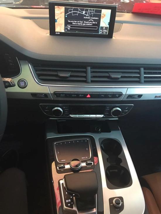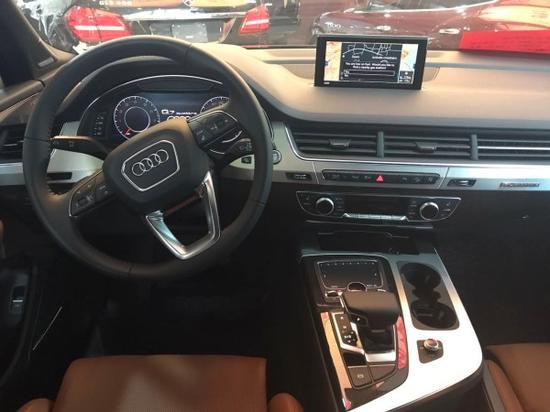 内饰方面:18款奥迪Q7的内饰造型是典型奥迪风格,材质高档、做工精细,真皮座椅和方向盘、深棕色木纹装饰的点缀都体现出了低调的豪华感。还有仪表盘的水滴造型很别致,真皮包中控台的功能键排列有序,在排挡杆的周边,布置了MMI多媒体交互系统和一键式启动按钮,体现出奥迪崇尚科技的一面。足够大的车身尺寸,让驾乘和载物都毫无压力。