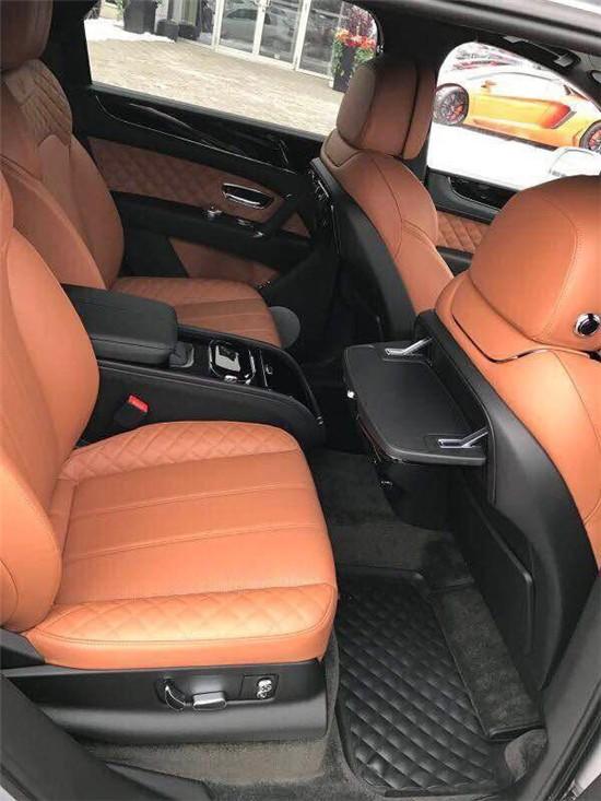 17款宾利添越的内部采用大量真皮材质,还配有诸多高科技配置,包括夜视系统、抬头显示、触控式发动机停启按键以及带导航功能的全液晶高清仪表盘等。添越的尾门采用电动开启,并且在行李厢中设置了功能丰富的滑动式导轨,既可用于固定、分割行李,也可以拉出软垫作为休息、乘坐的平台,充分体现了宾利SUV车型崇尚的生活方式。